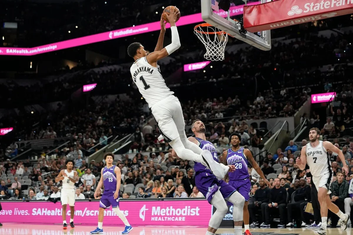Bintang muda San Antonio Spurs Victor Wembanyama terus tampil mengesankan dalam menit terbatas sepanjang pramusim. Kali ini dia hanya membutuhkan 16 menit untuk menghasilkan 22 poin (6/10 FG, 1/4 tripoin, 9/10 tembakan gratis), 7 rebound, 3 asis, dalam kemenangan 134-130 atas Utah Jazz, pada Jumat malam (10/10) waktu AS. Namun kali ini dia tidak sendirian, karena ada Dylan Harper yang ikut bersinar.